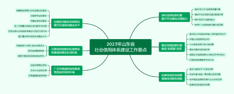 其中最值得关注的是,在山东省2023年政府报告中提出“广泛践行社会主义核心价值观,弘扬伟大建党精神,传承沂蒙精神,推进信用山东建设,倡导新时代美德健康生活方式,深化‘五为’志愿服务,推动文明创建取得更好成绩,让‘厚道山东人’形象更加闪亮。”明确了建立完善统筹推进美德山东和信用山东建设工作协调机制,倡导新时代美德健康生活方式,推动公民诚信意识和社会诚信水平不断提升。此外,在健全信用监管机制方面,探索实行信用修复与行政处罚“两书同达”。推动各级各部门在送达《行政处罚决定书》时,同步送达《信用修复告知书》,引导和帮助失信主体纠正违法失信行为;在拓展信用应用场景方面,推进“信易贷”扩大信用贷款。组织各类融资信用服务平台与省级节点“应接尽接”,助推银企高效对接;有序推进信用报告替代企业合规证明。针对需要企业出具各类无违法违规证明的行政管理和公共服务事项,分期、分批、有序推进,通过线上一键式获取专版报告,实现数据多跑路、企业不跑路,切实为企业简化办事手续,提升政务服务水平。河北省在聚焦高质量发展方面,完整准确全面贯彻新发展理念,深入谋划中国式现代化河北场景,统筹实施,分级推进,为实现中国式现代化展现河北担当、贡献河北力量。今年的社会信用体系建设工作要点,着重提出加强政务诚信建设、提升企业诚信水平、加强社会诚信体系建设及深化信用协同联动等4个方面提出16项工作任务。